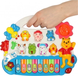 Ljubek klavirček z veselimi živalicami pritegne otroke od prvih trenutkov. Glede na izbrani način predvaja lestvico, melodije ali živalske zvoke. Ob pritisku tipk se prižge sonček, kar otroke motivira k nadaljnji interakciji in odkrivanju.