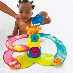 Spremenite običajno kopel v avanturo z našim barvitim plastičnim akvaparkom! Ta igrača ponuja dva spiralna vodna tobogana, povezana na centralni stolp z modrim cvetličnim gumbom in hobotnico na vrhu, kar spodbuja senzacionalno in domišljijsko igro. Otroci bodo uživali ure zabave v kopalnici s to igračo, ki spodbuja gibanje in barvno stimulacijo. Vključuje dve živali na pontonih in zajemalec v obliki kita za nalivanje vode.