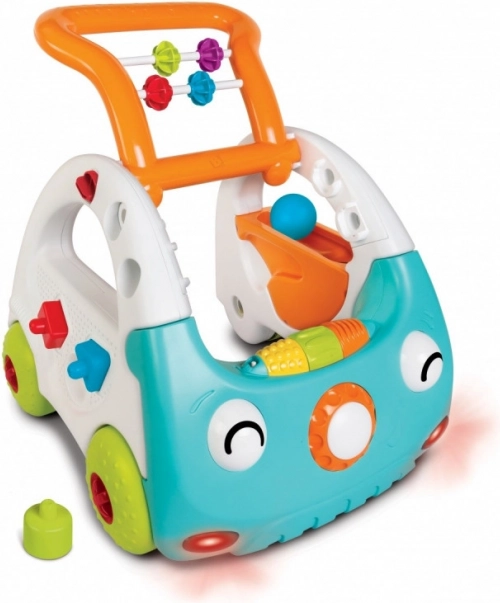 - Lahko služi kot opora za malčka, ki se uči hoditi (9M+), ter za igro v sede (6M+) in stoje (12M+).
