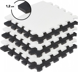Penaste puzzle Luno v brezčasni črno-beli barvi spremenijo vsak otroški kotiček v udoben in varen prostor za igro. Zaradi debeline 1,2 cm odlično blažijo udarce in hrup ter zanesljivo izolirajo pred hladnimi tlemi – idealno za plavajoče pode, keramiko ali linolej.