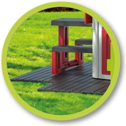 Set 6 kosov dimenzij 45 × 45 cm je zasnovan tako, da je združljiv z vsemi hiškami SMOBY. Namestitev opravite brez orodja – plošče preprosto zaskočite skupaj in jih položite na raven teren.