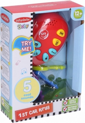 Interaktivni ključi za otroke z zvočnimi in svetlobnimi učinki znamke Infunbebe, ki posnemajo prave avtomobilske ključe in zagotavljajo ure zabave.