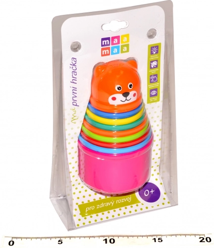 Priljubljena otroška igrača za razvoj fine motorike in zaznavanja barv. Komplet vsebuje 9 različno velikih lončkov, ki jih je mogoče zlagati enega v drugega ali enega na drugega. Spodbuja koordinacijo oko–roka, prepoznavanje barv in učenje velikosti na igriv način.