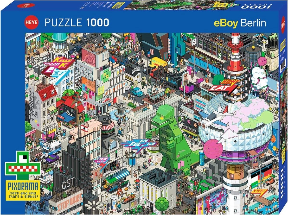 Potopite se v živahno berlinsko atmosfero v pikselni estetiki, kjer vsak košček razkrije nov detajl. Puzzle Pixorama: Berlinski lov kombinira ustvarjalno umetnost s premišljenim sestavljanjem in prinaša zabavo za vso družino ter izkušene ljubitelje puzzlov. Zahvaljujoč formatu približno 70 × 50 cm lepo izstopa tudi po dokončanju kot dekoracija.