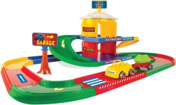 Dvonivojska otroška garaža WADER PLAY TRACKS prinaša prilagodljivo avtomobilsko stezo dolžine 3,4 m in bogate dodatke. Iz pisanih delov lahko preprosto zgradite različne trase, spuste in parkirna mesta, ki spodbujajo domiselno igro in simulacijo prometnih situacij. Set vsebuje avtomobilček Kid Cars Sport s prikolico in dodatno vozilo, dekoracije ter 96 nalepk za enostavno okrasitev proge in garaže.