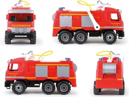 Velik gasilski tovornjak LENA Giga Trucks Actros dolžine 63 cm bo razveselil male reševalce z realističnimi funkcijami. Ima vrtljivo vodno topovje, zmogljivo batno črpalko, rezervoar za 1,5 l vode in doseg curka do 8 metrov. Zahvaljujoč pocinkanimi jeklenimi osemi je primeren za igro v notranjih prostorih in na prostem. Priloženih je 12 nalepk gasilske opreme. Od 3 let.