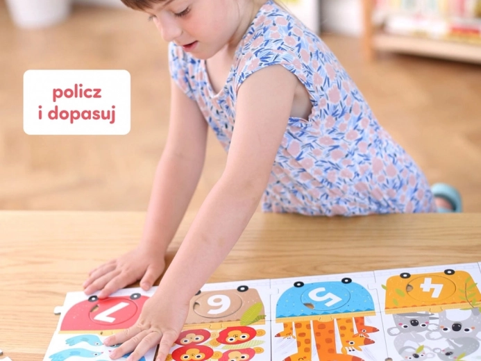 Ilustracije so prilagojene starosti otrok, veliki elementi iz čvrstega kartona lepo sedejo v otroške roke in prenesejo večkratno sestavljanje. Igra je prilagodljiva – potnike in številke je mogoče poljubno menjati in preizkušati nove kombinacije, kar spodbuja ustvarjalnost in samostojno raziskovanje.