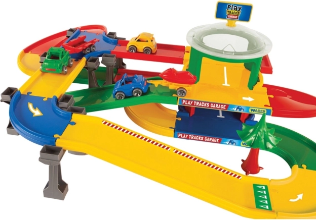 Mega garaža s traso iz serije Play Tracks Garaža ponuja inovativno in lahko konstrukcijo, ki jo enostavno sestavite v različne oblike tras. Naši trasovni sistemi merijo do 5,5 m in vključujejo dvonivojsko garažo.