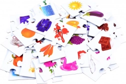 Poslušamo in sestavljamo – vodja igre pripoveduje zgodbo, v kateri uporablja predmete, prikazane na sestavljankah. Otrok mora čim hitreje najti ustrezno kartico in osvojiti točke.