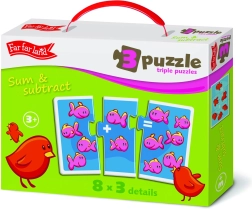 S puzzli trojni koščkov, ki jih sestavljajo slike, otroci zlahka razumejo osnovne pojme matematike v igralnem okolju. Ta komplet je idealen za razvoj logičnega razmišljanja in kognitivnih sposobnosti.