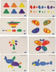 Kamenčki različnih velikosti omogočajo sestavljanje živalic, predmetov in domišljijskih podob. Kartice služijo kot navdih in kot predloge za samostojno ustvarjanje.