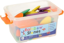 Ta izobraževalni komplet je idealen za predšolske otroke in mlajše šolarje. Gladki plastični kamenčki v živahnih barvah privabljajo k prosti igri in vodenim dejavnostim: otroci lahko štejejo, primerjajo velikosti, razvrščajo po barvah ter ustvarjajo slike in vzorce po karticah ali lastni domišljiji. Praktična škatla olajša shranjevanje vseh delov na enem mestu.