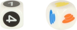 - 36 kos kamenčkov različnih oblik in barv, 20 kos kartic z nalogami, 6 kos lončkov, 1x pincete, 2x kocka