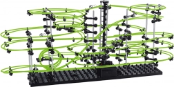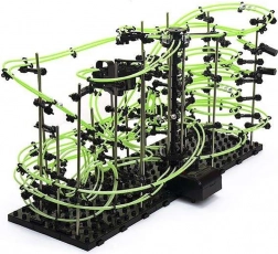Po sestavi opazujte, kako se kovinske krogle spuščajo navzdol in se nato z spiralnim dvigalom vračajo nazaj na start. V temi proga žari, zato je vsak prehod videti osupljivo. Družini in prijateljem v praksi pokažite osnovna fizikalna načela – hitrost, gravitacijo in centrifugalno silo.