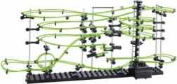 SPACERAIL Glow je kreativni gradbeni komplet za ljubitelje tehnike, logike in konstrukcije. Iz trdnih plastičnih in kovinskih delov ter fosforescenčnega vlakna sestavite dovršeno krožno stezo na stabilni osnovi. Med gradnjo oblikujete ovinke, zanke in spuste ter prilagodite idealen prehod kroglic.
