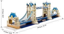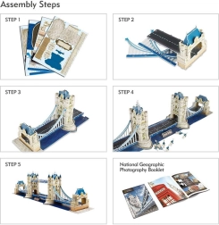 Odkrijte London skozi gradnjo enega njegovih najslavnejših simbolov – Tower Bridge. 3D sestavljanka iz serije National Geographic podjetja CubicFun ponuja realistično izvedbo, natančne detajle in prijetno izkušnjo sestavljanja brez lepila. Deli iz približno 3 mm pene z laminiranim potiskom zagotavljajo trdnost in čudovit videz končanega modela.