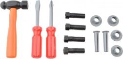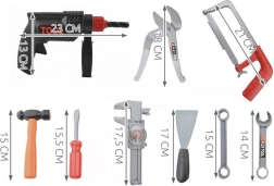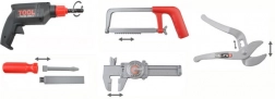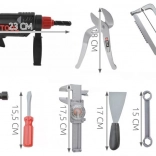 Popoln otroški komplet orodja v trpežnem kovčku za male mojstre od 3. leta dalje. Vsebuje realistična plastična orodja, kot so vrtalnik z vrtečim svedrom, žaga, kladivo, izvijači, klešče, set ključev, pomikalo in drugi dodatki. Komplet razvija fino motoriko, kreativnost ter učenje odgovornosti skozi igro. Kovček poskrbi, da je vse pregledno skupaj doma in na poti.