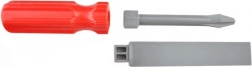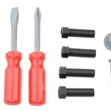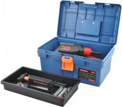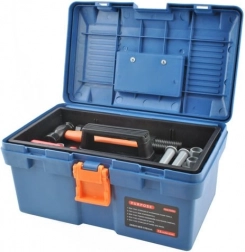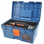 - kovček, ročni vrtalnik, kladivo, križni izvijač, ploščati izvijač, vijaki in matice, ročna žaga, nastavljivi ključ, obročni ključ, nasadni ključ, ploščati ključ, pomično merilo, lopatica, pila (zamenljiv nastavek), vodna tehtnica, kotniki, spojni deli z odprtinami