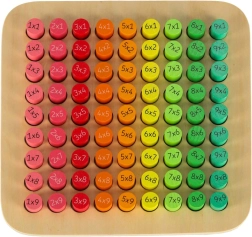 Ta velika lesena tabla poštevanke je idealen pripomoček za šolarje od 7 let naprej. Zahvaljujoč preglednim kockam s primeri in rezultati se otroci učijo množenje vizualno in na igriv način. Barvna zasnova povečuje preglednost in podpira lažje pomnjenje.
