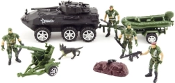 Ta vojaški komplet prinaša vse, kar otroci potrebujejo za pustolovsko igro vojakov. Natančno izdelane figurice z orožjem, dopolnjene z oklepnim vozilom, topom, čolnom in psom, spodbujajo domišljijo in omogočajo ustvarjanje raznolikih akcijskih situacij. Deli so iz trpežne plastike, nekatere komponente pa je mogoče preprosto sestaviti.