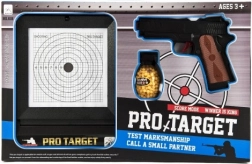Privlačna embalaža PRO-TARGET na prvi pogled prikazuje vsebino – pištolo, tarčo in prostor za municijo, idealno kot darilo.