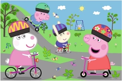 Odkrijte veselje do sestavljanja s temo »Aktiven dan s Peppo«. Veliki kosi so idealni za mlajše otroke – lažje jih držijo, natančno se prilegajo in zahvaljujoč posebnemu kalandriranemu papirju z nežnim sijajem se udobno sestavljajo tudi pri različni osvetlitvi.