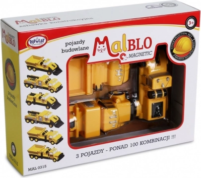 Z magnetnimi kockami MalBlo otroci oblikujejo in gradijo lastne tovornjake, mešalce, žerjave in druge delovne stroje. Patentirani sistem magnetov z zaklepom drži trdno, obenem pa se gladko razdruži – idealno za pogoste predelave brez frustracij.