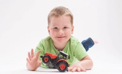 Zvočni in svetlobni učinki spodbujajo otroško domišljijo: po pritisku na gumbe se zaslišijo vzvratna vožnja, hupa in zagon motorja. Igrača je pripravljena za takojšnjo uporabo, saj so baterije priložene.