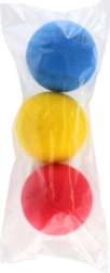 Set vključuje modro, rumeno in rdečo žogico, ki pritegnejo pozornost in dodajo zabavo v vsako igro.