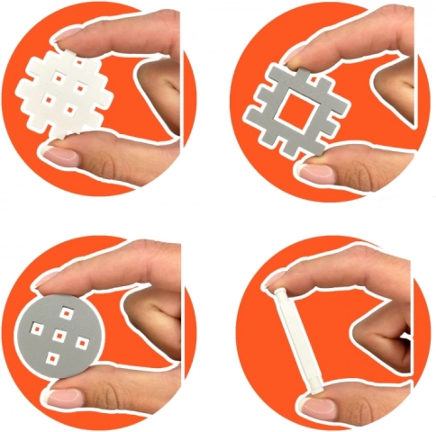 Kar 301 kosov v 27 oblikah – od osnovnih kock prek spojk do posebnih elementov. Gradite hiše, avtomobile, stroje in izvirne konstrukcije ter vsak dan razvijajte domišljijo.