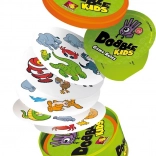 Igra Dobble Kids je nalezljiva zaznavna igra za otroke od 4 let, ki uri reflekse, zbranost in hitro odločanje. Vsaki dve karti imata točno en skupen simbol – vaša naloga je, da ga čim hitreje najdete in poimenujete. Kratek čas igranja okoli 10 minut in do 5 različic igre zagotavljata, da ne bo dolgočasna.