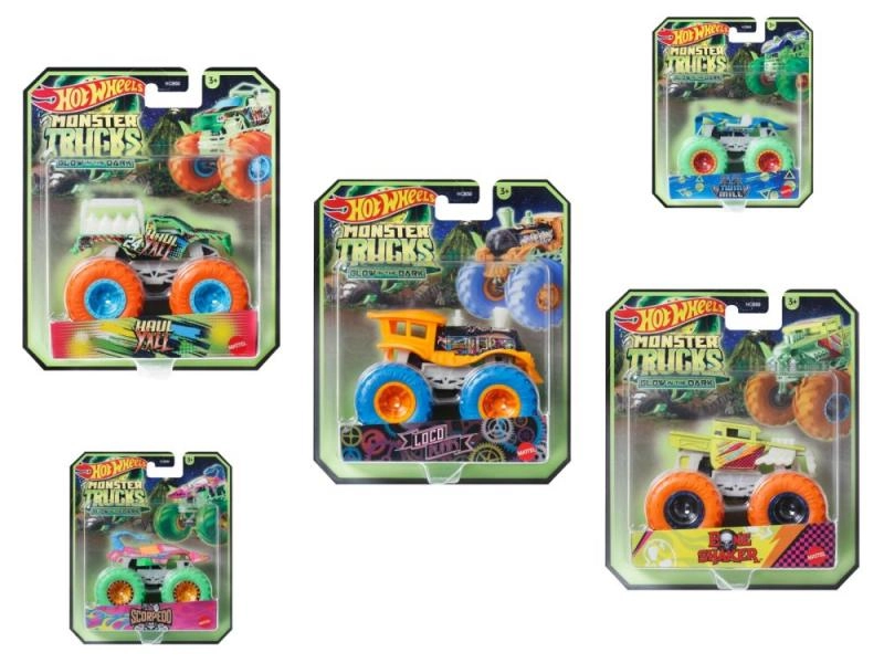 Akcija je še bolj vznemirljiva, ko ugasnejo luči in se Hot Wheels® Monster Trucks, ki svetijo v temi, zasvetijo! Vsako vozilo iz te serije ima elemente, ki žarijo v temi, da ti pokažejo, kaj pomeni »svetlobna hitrost«! Opazuj, kako se Monster Trucki spopadajo v temi! Ogromna kolesa in vrhunski dizajni dajo novo energijo neskončnim trkom in udarcem. Spoznaj epski značaj svojega vozila in uživaj v še boljši zabavi. Pri tem ti pomagajo številne podrobnosti na embalaži – kot so ime, tip vozila, zmogljivost, edinstven način napada in motorizacija. Oboževalci in zbiratelji monster truckov jih bodo želeli vse! Odlična darila za otroke od 3 do 8 let. Vsak se prodaja posebej glede na trenutno ponudbo. Barve in videz izdelka se lahko razlikujejo. Velikost pakiranja približno 14 × 21,5 × 6,5 cm. Starost 3+.