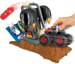 Vgrajen izstrelitveni mehanizem izstreli avto ali monster truck v strm skok. Otroci pritisnejo ročico in uživajo v takojšnji akciji.