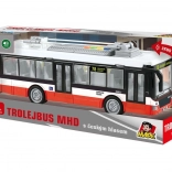 Ta podrobno izdelan trolejbus otrokom prinaša pristno izkušnjo mestnega prometa. Igrača predvaja postajna obvestila v češčini (Glavna postaja, Mestno gledališče, Živalski vrt) in je dopolnjena z atraktivnimi svetlobnimi efekti. Zahvaljujoč pogonu na vztrajnik je dovolj, da trolejbus rahlo potisnete in zapelje naprej.