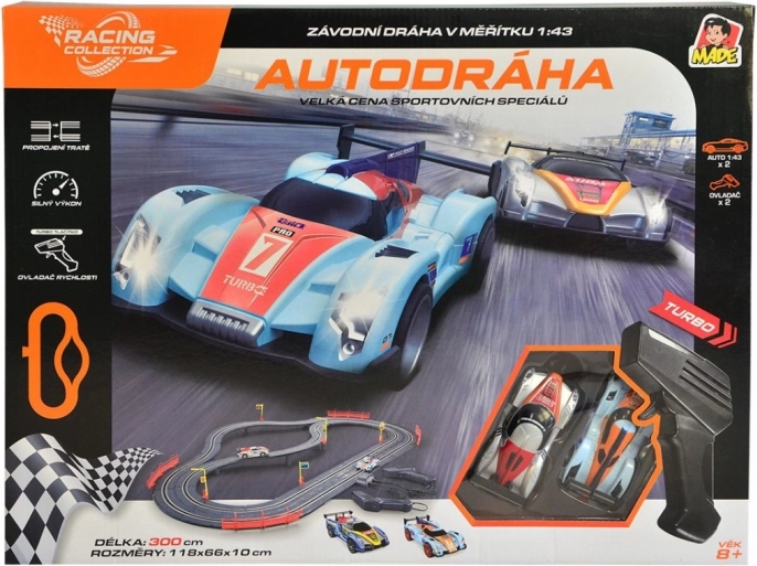 V pakiranju sta dve dirkalni vozili in dva ročna upravljalnika za takojšnje štarte in natančen nadzor hitrosti. Avtocesta je pakirana v slovenskem pakiranju in je idealna kot darilo za male in velike navdušence nad dirkanjem.