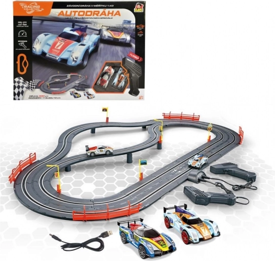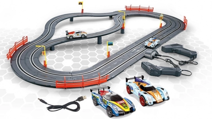 Ta kakovostna avtocesta prinaša zabavo za vso družino. Zahvaljujoč dolžini proge 300 cm in dinamični postavitvi z mostom boste uživali v napetih dvobojih v dvoje. Enostavno napajanje preko USB vam omogoča priklop na običajni USB napajalnik, powerbank ali računalnik (vir ni priložen).