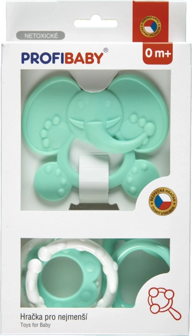 Ta komplet v pastelnih barvah je zasnovan tako, da dojenčkom nudi varno olajšanje pri izraščanju zob hkrati pa spodbuja njihove čute. Lahki materiali in gladke oblike so nežni do ust in dlesni, enostavni za držanje ter podpirajo razvoj fine motorike.