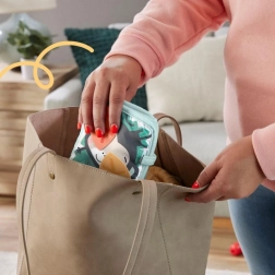 Lahek, mehak in enostaven za shranjevanje. Zložite ga v torbo in s paščkom pritrdite na voziček – senzorična igra kjerkoli.