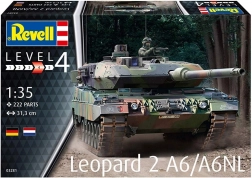 Ustvarite zvesto repliko modernega tanka LEOPARD 2A6/A6NL, ki spada med vrh oklepne tehnike 3. generacije. Model Revell ponuja natančne detajle in kakovostno izdelavo, zaradi česar izstopa v vitrini kot tudi na tekmovanjih.