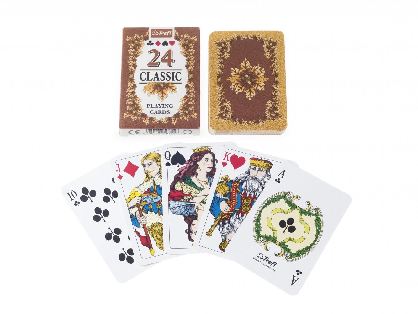 Ta komplet vsebuje 24 kart v razponu 9–as, idealen za igre, kot so »Prši«, skrajšana različica »Marias« ali »igra s Ponom«. Proizvajalec je tradicionalno podjetje Trefl-Kraków s koreninami iz leta 1947, kar zagotavlja zanesljivo kakovost papirja in dolgo življenjsko dobo.