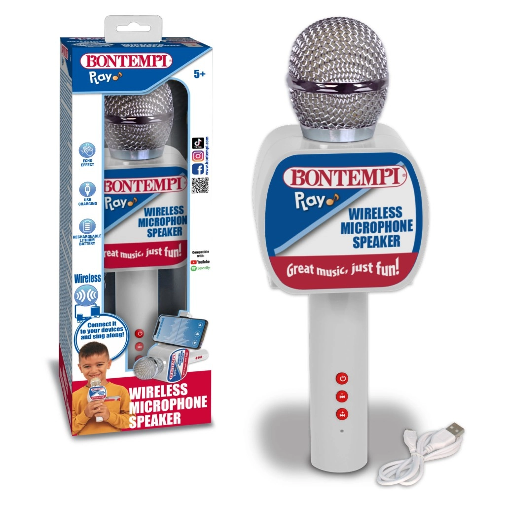 Mikrofon z zvočnikom zagotavlja močan in čist zvok. Dodajte echo za koncertno vzdušje in več zabave pri petju.
