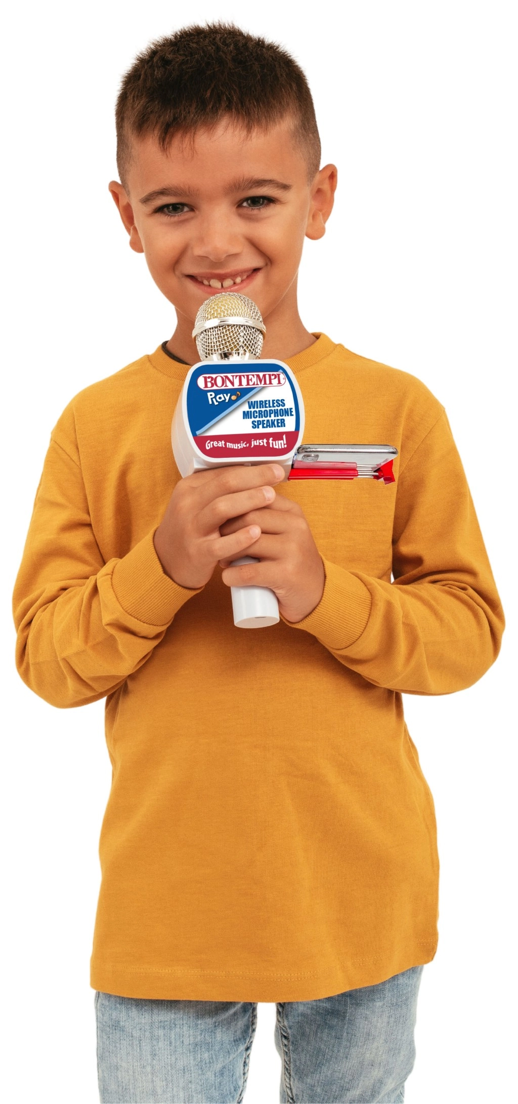 Za udobje skrbijo vgrajeno držalo za telefon, pregledni gumbi za upravljanje glasnosti in učinka echo ter polnilna baterija za dolge ure zabave. Idealno tudi za otroke od 5. leta naprej – razvija samozavest, ritem in veselje do petja.