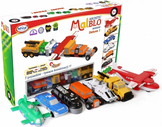 Sestavljanka MalBlo MAGNETIC Deluxe je pametna igrača za male graditelje. 21 elementov v paketu (7 sestavljenih vozil) omogoča sestaviti več kot 1000 različnih kombinacij – od avtomobilov in vlačilcev do letal ter strojev prihodnosti. Deli imajo idealno magnetno in mehansko trdnost spoja, zato so enostavni za upravljanje in hkrati trdno držijo skupaj.