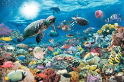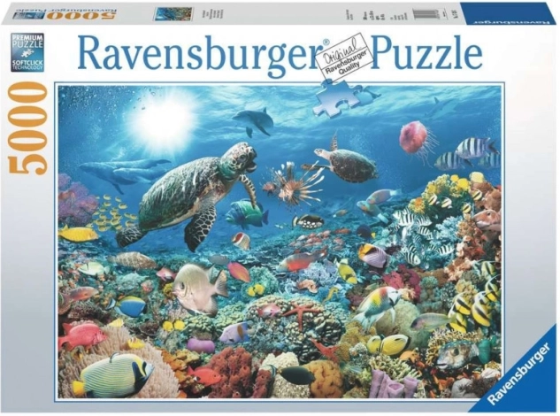 Ta sestavljanka prikazuje živahen podvodni svet, poln pisanih rib, želv in koral, kar jo naredi za pravo vizualno poslastico.