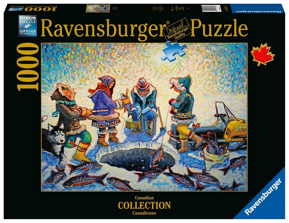 Uživajte v sprostitvi in zbranosti s premium sestavljanko znamke RAVENSBURGER. Motiv lednega ribolova izstopa z bogatimi podrobnostmi in harmoničnimi barvami, ki jih postopoma odkrivate med sestavljanjem. Zahvaljujoč natančnemu izseku koščki popolno prilegajo, kar prinaša tekočo in zadovoljivo izkušnjo.