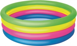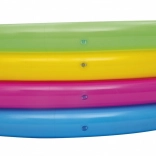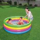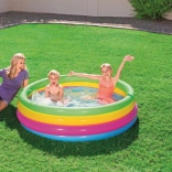 Ta barvit vrtni bazenček spremeni vsak popoldan v odlično zabavo. Štirje napihljivi obročki tvorijo stabilne in udobne stene, mehko napihljivo dno povečuje udobje pri sedenju in igri, kakovosten PVC material pa zagotavlja dolgo življenjsko dobo.