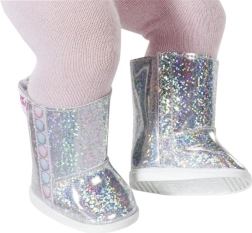 Privoščite svoji punčki zimski slog z bleščečimi čevlji BABY born. Dolgi, srebrni škornji odlično pristajajo punčkam višine 43 cm in zahvaljujoč kakovostni izdelavi prenesejo ure domišljijske igre. Bleščeča površina in dekorativni detajli dodajo vsakemu outfitu čar.