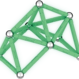 GEOMAG Glow je izviren magnetni konstruktor, ki omogoča ustvarjanje neomejenega števila konstrukcij s pomočjo magnetnih paličic in jeklenih kroglic. Zahvaljujoč fosforescentnim delom bodo tvoji modeli po osvetlitvi v temi lepo žareli – idealno za zabavne eksperimente in privlačno učenje.