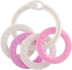 Primerno za otroke od 3 mesecev naprej, ta komplet za grizenje vsebuje pisane plastične obročke, ki so ne samo lahki, temveč tudi pomagajo pri razvoju fine motorike. Zaradi različnih struktur in oblik ta igrača nudi več čutnih dražljajev, ki so namenjeni obdobju izrasta zob pri otroku.