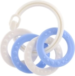 Teksture na površini obročkov zagotavljajo dodatno stimulacijo za dlesni otrok med izrastkom zob.
